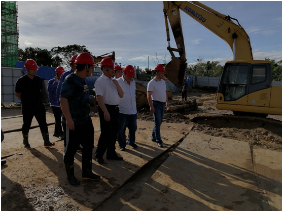 自9月13日中冀建勘辦公樓開工儀式以來,經過近一個月時間的努力,現場基本達到了24小時不間斷施工狀態。韓董事長一行人首先來到項目施工現場,對現場周邊環境、施工現場質量控制、安全管理、基坑支護工程進度情況等進行了檢查。在聽取項目匯報后,李總經理肯定了項目部在項目管理上的工作成果,重點提出對現場混凝土抽查檢測和基坑支護方案優化等問題,強調狠抓現場質量管理等事項。韓董事長要求建設單位、施工單位和監理單位要各負其責,嚴格把控現場質量控制、安全管理,按時保質的完成基礎施工工程,爭取明年3月底完成±0以下施工。同時要求項目部在今后的工作中繼續嚴格執行公司管理要求,做好疫情管控,細化項目質量、安全、進度管理,樹立良好的中冀建勘形象,努力把項目建設成為??诮瓥|新區優質工程,為中冀建勘打開海南總承包市場打下良好基礎。
