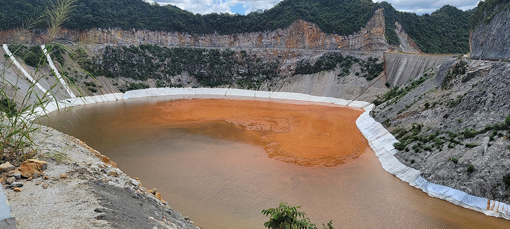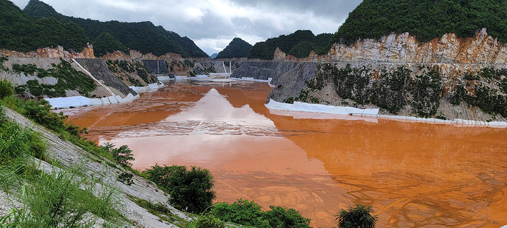 對尾礦庫來說防止滲漏極其關鍵,此項目排泥庫庫區位于巖溶發育區,巖溶治理是關鍵中的關鍵。庫周設計3座堆石壩,2座混凝土重力壩,壩體的施工質量關系排泥庫的運行安全。