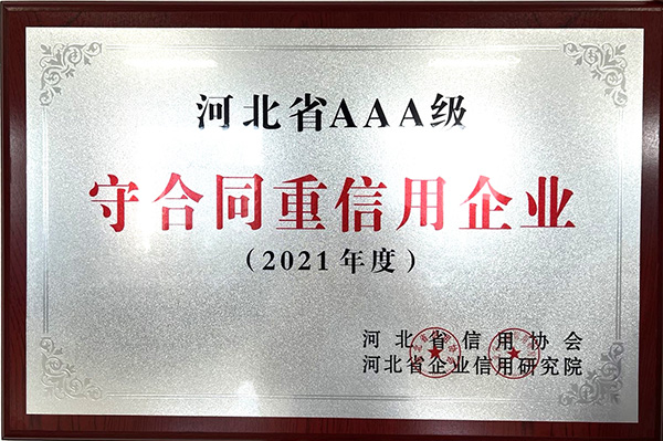 根據(jù)河北省信用辦、河北省信用協(xié)會等七部門印發(fā)的《關(guān)于開展“推進(jìn)誠信建設(shè)共建信用河北”的活動方案》的通知及《關(guān)于2021年度河北省“守合同重信用”企業(yè)申報(bào)認(rèn)定工作的通知》,我公司被評為“河北省誠信共建企業(yè)”和“河北省AAA級守合同重信用企業(yè)”。