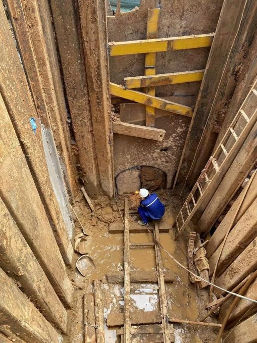 本工程因施工區域位于場內道路兩側,施工空間受限,人工頂管工作基坑開挖尺寸受限,且不能放坡開挖,并且現場消防水管、光纖管等既有管線多,地下水位淺,施工難度較大。定向鉆穿越施工同樣也是探明地下既有管線,按圖紙要求并考慮延長設計穿越路徑,并在穿越過程中通過傳感器發出的信號及時調整偏差,在項目部的精心組織和實施下,最終順利完成所有路段的管道穿越任務并交付。