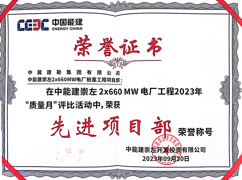 中能建崇左2×660MW電廠樁基工程,在施工過程中,項目部統(tǒng)一思想、統(tǒng)一步調(diào)、科學(xué)組織,精心部署,嚴(yán)格按照施工技術(shù)步驟與措施施工,層層落實安全,環(huán)環(huán)緊扣質(zhì)量,加大設(shè)備、人員投入,全力以赴做好各項工作。全體員工以頑強拼搏的施工風(fēng)范和服務(wù)業(yè)主的理念給我公司留下了深刻印象,贏得了業(yè)主及各方的高度稱贊。