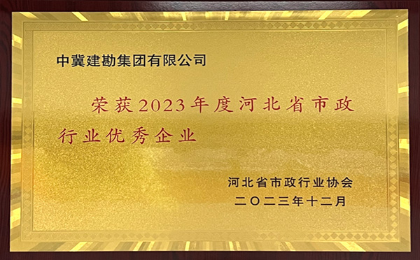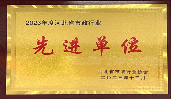 近日,由河北省市政行業協會評選,公司榮獲“2023年度河北省市政行業優秀企業”、 “2023年度河北省市政行業先進單位”稱號。
