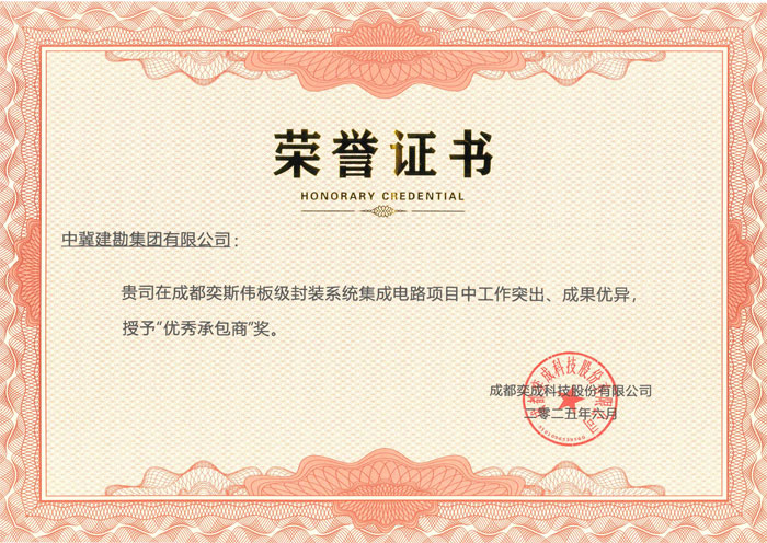 同心聚力 共賦“芯”章——集團公司獲得成都奕成科技股份有限公司“優秀承包商”榮譽