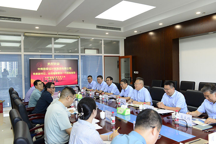 7月23日,中南勘察設計院集團有限公司黨委副書記、總經理黎愛華一行蒞臨我集團交流訪問。集團公司董事長李華偉、總經理劉晶晶、副總經理劉利平、總工程師聶慶科、總經濟師胡建敏、工會主席孫運青、監事會主席李友東進行接待與座談,安全生產部主任王厚星、綜合辦公室主任周勇陪同參加。