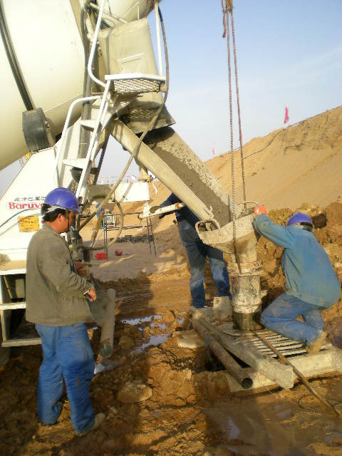 該工程位于陜西省榆林市西南的橫山縣白界鄉馬扎梁村附近,包括空冷區域,主廠房區域樁基。樁基工程自2008年4月26日開工,至2009年3月18日竣工,實際完成鋼筋混凝土灌注樁1981根,設計砼方量36252.75m3,澆筑混凝土39664.2m3。