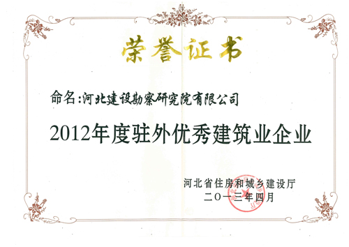 4月26日,河北省住房和城鄉(xiāng)建設廳發(fā)布冀建市[2013]8號文件,對2012年度在工程質量安全管理等方面作出突出成績的駐外建筑業(yè)企業(yè)和個人進行表彰。其中,我公司被命名為2012年度駐外優(yōu)秀建筑業(yè)企業(yè),祁建永、劉雙辰、史曉楠、陳玉國被命名為2012年度駐外優(yōu)秀項目經理。