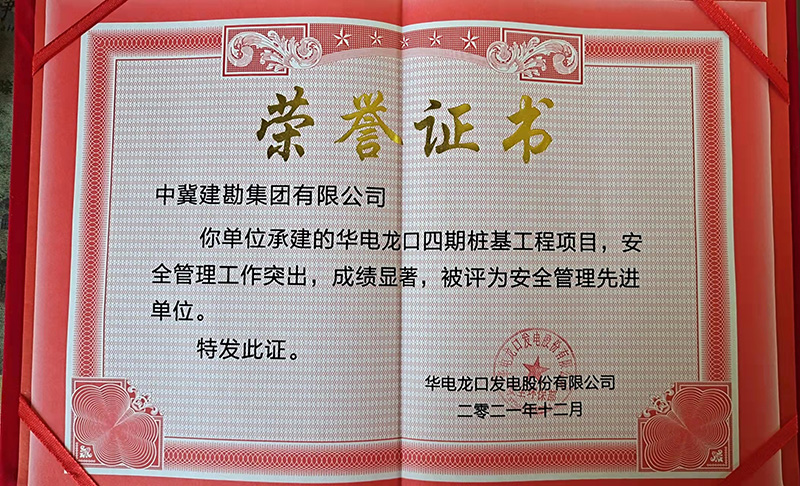 華電龍口四期樁基工程項(xiàng)目安全工作管理突出,被頒發(fā)“安全管理先進(jìn)單位”榮譽(yù)證書,張金根被評(píng)為“安全管理先進(jìn)個(gè)人”榮譽(yù)稱號(hào)。