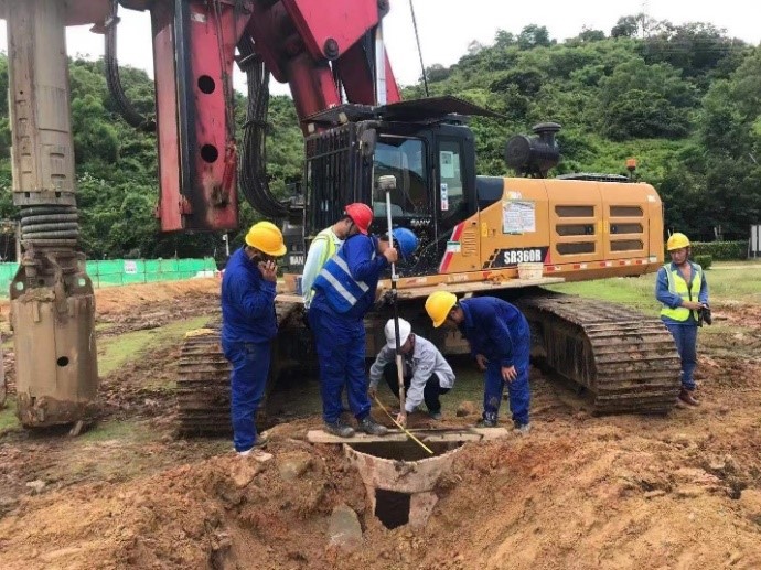 在進行GIS區(qū)域樁基施工過程中,發(fā)現(xiàn)該施工區(qū)域的地下管線走向及位置與建設單位提供的竣工圖不符。項目部積極與設計、監(jiān)理、業(yè)主等單位協(xié)調(diào)溝通,采用人工挖探坑、金屬探測儀等方式探明地下管線,在保證施工進度的同時也避免了因地下管線問題造成的施工事故。